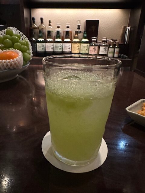 「マスカットのハリが素晴らしい。よし、爽やかにマスカットのロングカクテルで」