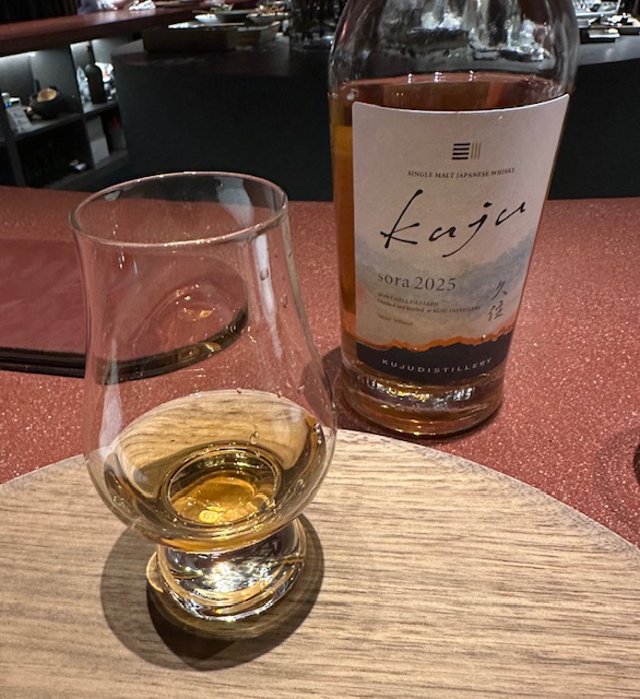 大分の久住、sora2025。しっかりしたボディをベースに、ピートの効いたウイスキーである。ピートの奥に蜜のような味わいを覚える厚岸とはまた違った芸風である。