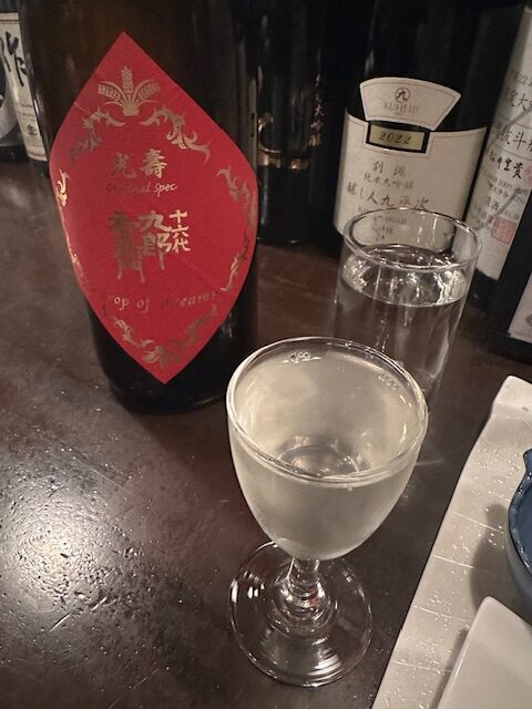 会社帰りのサラリーマンで賑わう店内。カウンターの片隅に座って早速sakeを注文する。長野の十六代。がっしりした構えから蜜のような甘みがチョロチョロと溢れ出す。