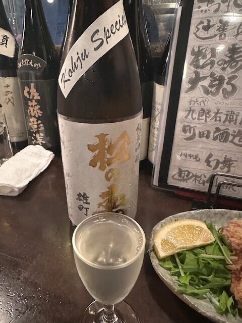 こうなるとsakeが止まらない。栃木から松の壽。梨のような吟醸香に感じる。吟醸酒の扱いが多いのもまたこの店の特徴。淡白すぎず、デロンデロンに濃い味付けでもない居酒屋飯とがっぷり四つの相撲を取るものである。