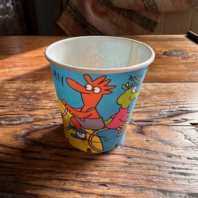 最後にブラックコーヒーのサーヴィスがあった。紙コップの柄が可愛くて癒される。