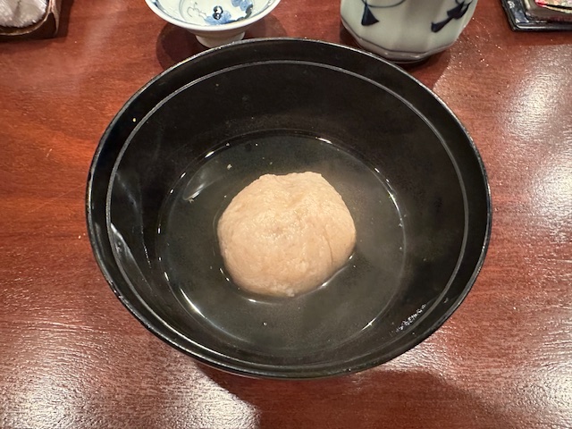 そこへ蓮根饅頭の椀がやってきた。蓮根のささやかな甘みを、ふわふわした団子に落とし込む。