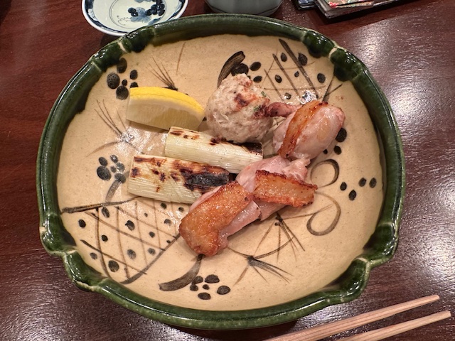 媛っこ地鶏とつくね。これもシンプルな塩焼きであり、身の引き締まりと柔らかさを兼ね備えた気持ちの良い鶏肉である。