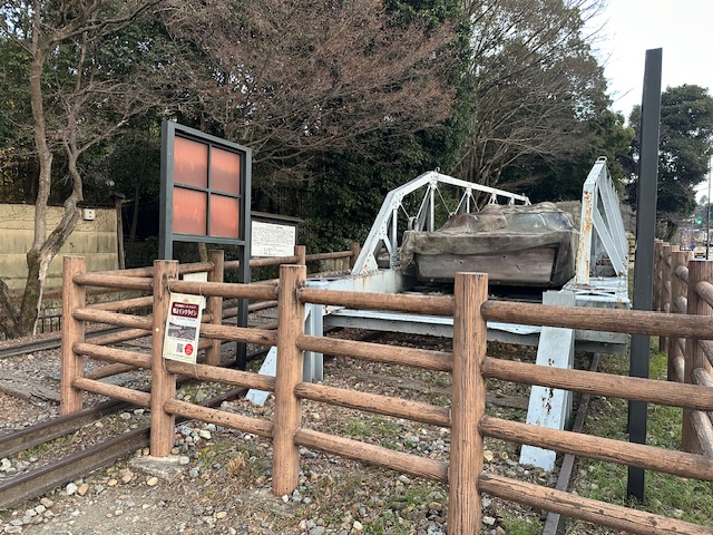 復元されたレールのため、その上を歩いても松本伊代や早見優のように咎められることはない。最上部まで登れば問題への挑戦権獲得である。レールの上で平均台みたくバランスを取ってみたり(難しすぎた)、大股で1歩1枚石畳を乗り移ってみたりしながら無邪気に登っていればあっという間に最上部である。桜の時期ともなれば圧巻の景色が現前するものだが、末枯れの木々の中であっても、遺構というコンテクストもあるから趣深い。