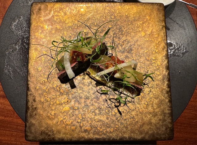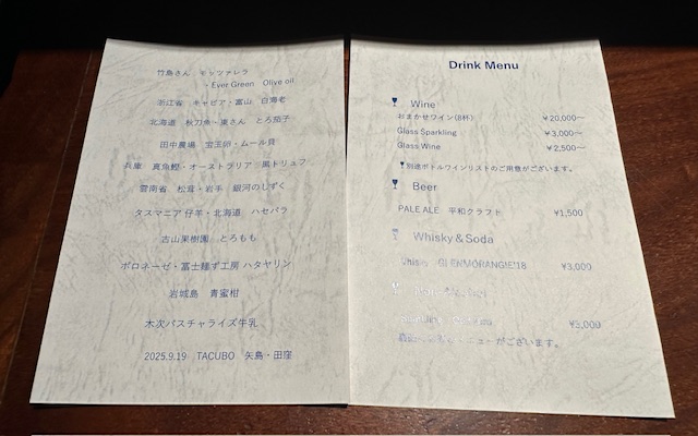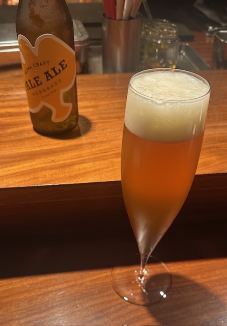ペアリングは8杯2万円と高めであったため、暫くはビールで通すこととする。名店に愛される平和酒造のクラフトビール。苦味の殻の中にフルーティさがあり、確かなコクに満足する。