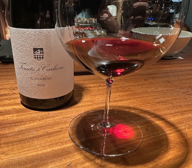 キャンティクラシコの産地ながら、そのルールに囚われず作ったサンジョヴェーゼ。赤く透明な空間にチェリーのコア。チェリーボンボンのノスタルジー。とても軽やかながらチェリーの香が確とある印象的な1杯である。