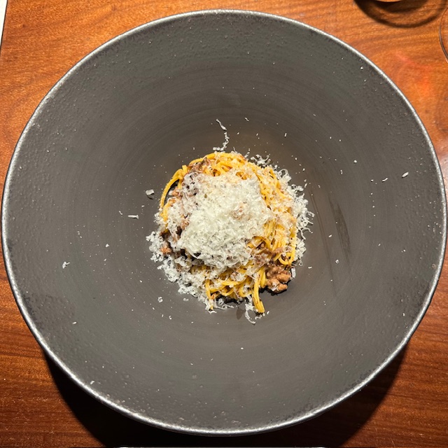 とはいえ他所は他所。彼らはTO-NAのこと、そして目の前の食事のことを考えていれば良いのである。最後のボロネーゼに向けてブルゴーニュの上品なピノ・ノワール。発酵感のある香り。味わいはアロマなどの派手さが無くかなり控えめ。合わせる料理の味で彩るキャンバスに思えた。