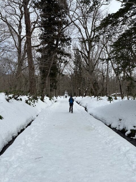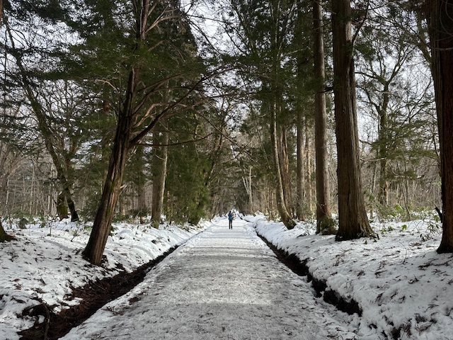 「ここから15分くらいで奥社入口。そこから奥社までは2kmなのに1時間かかると言われた。ただ実際どれくらいの悪路なのかわからない。意外とすいすい歩けて、舗装道の2kmと大差無い可能性だってある」