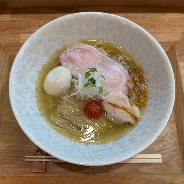 開店時間の少し前に入店。タッチパネルで食券を購入する。浅草橋の名店にて修業した人の店であり、タテルはそこの塩そばがたいそう優美なものであると記憶していた。そのため塩そばを選択し、マナもそれに追随する。