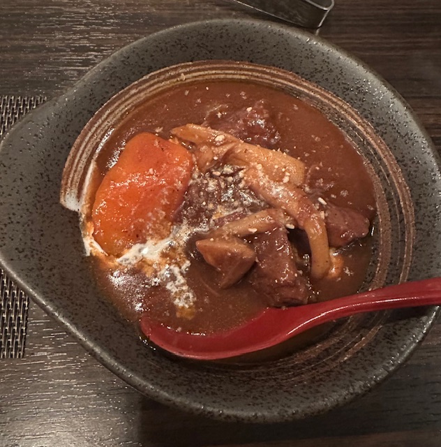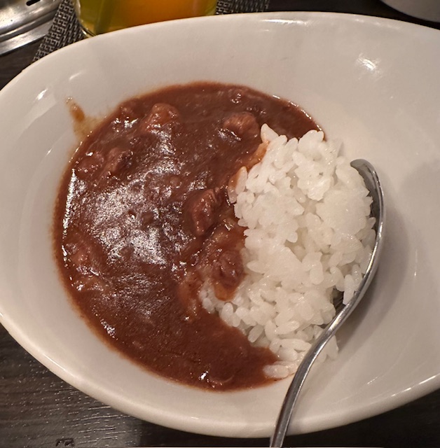 〆の食事には牛すじカレーを選択したタテル。牛すじなんてオマケ程度だろう、と見縊っていたが肉の質感が確とあり最後まで大満足であった。