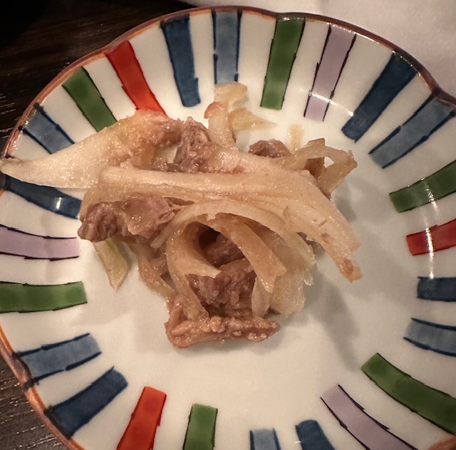 続いてやってくる牛肉玉ねぎポン酢で胃を休めることにした。